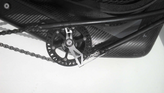 Hochwertige gezahnte Kettenleitrolle in neuem Design zur Montage im Zugtrum der Troytec Liegeräder.