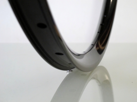 So wird ereicht, dass auch die Hohlkammer mit den Nippelsitzen komplett eloxiert ist. Dadurch wird ein hoher Korrosionschutz erreicht. Beim Aufbau und Auszentrieren der Laufräder hat man so den Vorteil, dass sich die Speichennippel bei höheren Speichenspannungen viel leichter drehen lassen.