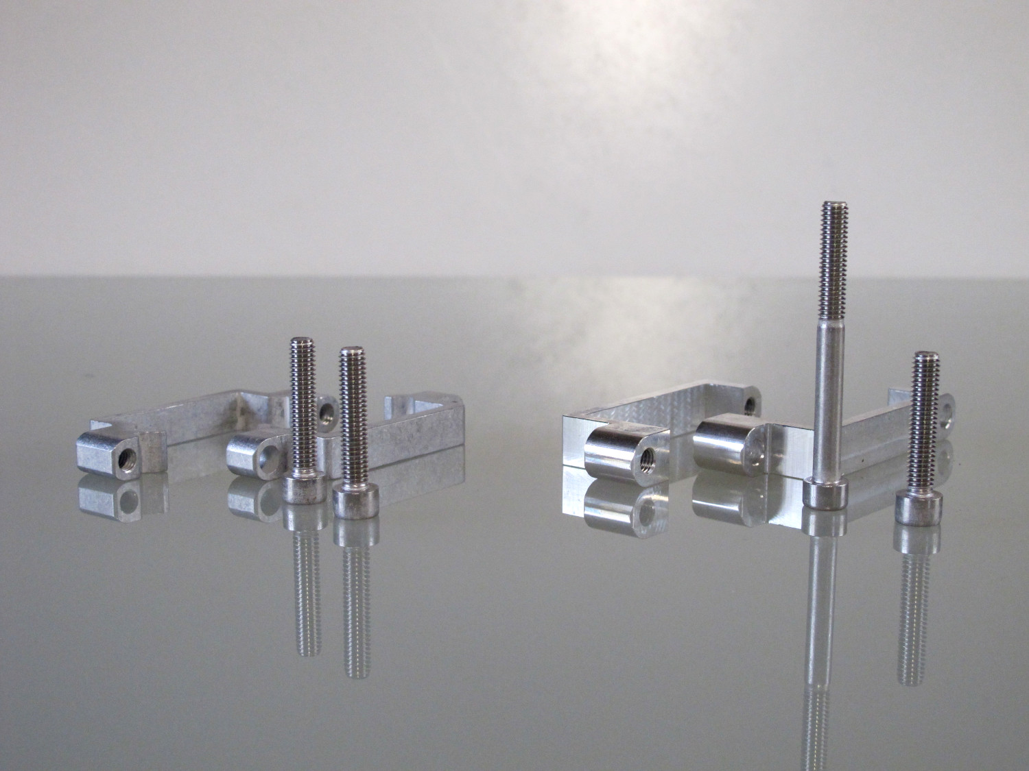 Mit 2 Stück dieser Schellensets werden die Tretlagerschlitten, also die Sockel für die Tretlager am Tretlagermast des Velomobils befestigt.